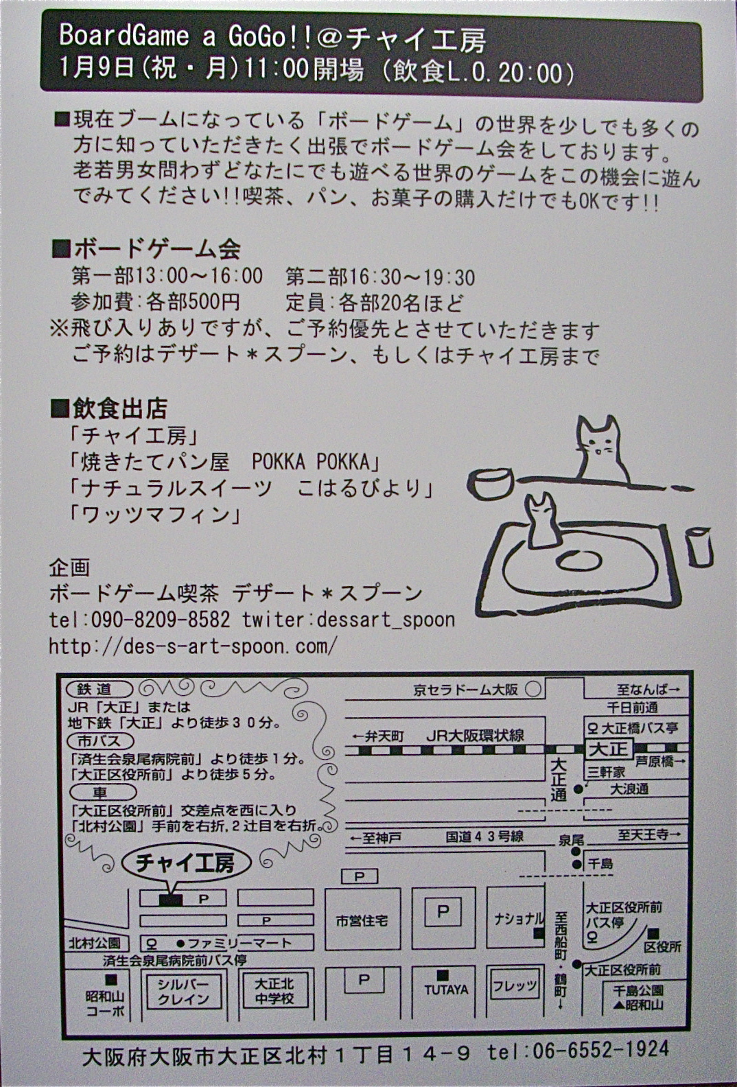 電話06−6552−1924(チャイ工房)まで
