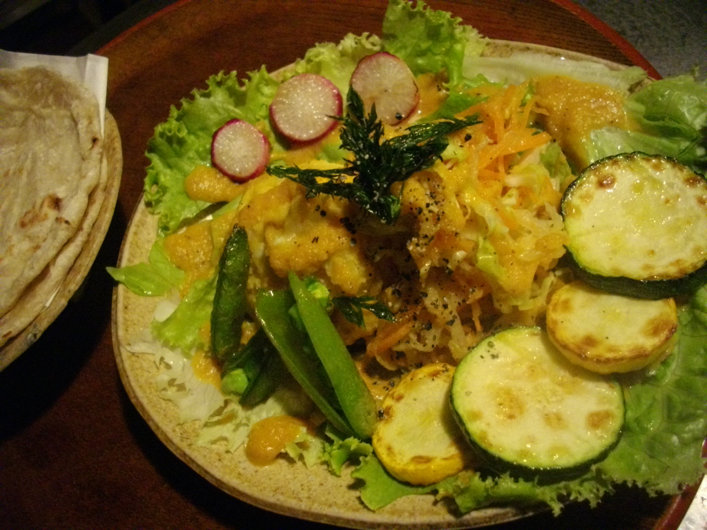 上の写真は今日のカリー(ターメリックライスで)で、
