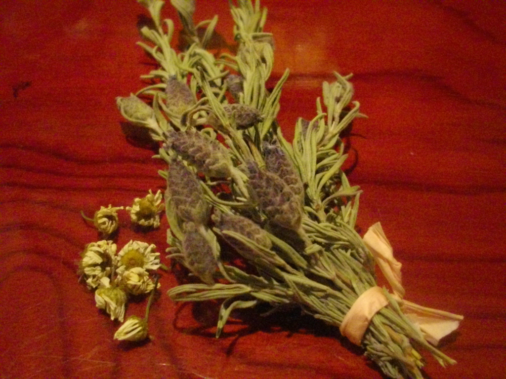 カモミールやラベンダーなど好きな香りのハーブを用意。
